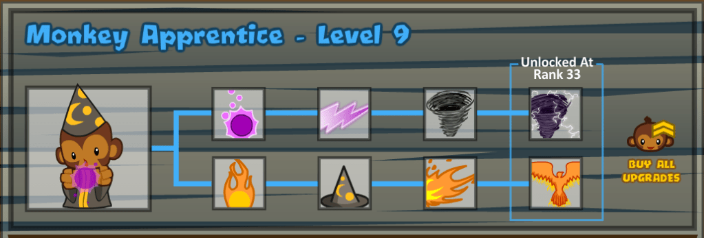 - Tempest Tornado (tornado appears more often, is more larger and more powerful, blows bloons further away, and pops them once before blowing. Still removes ice and glue)